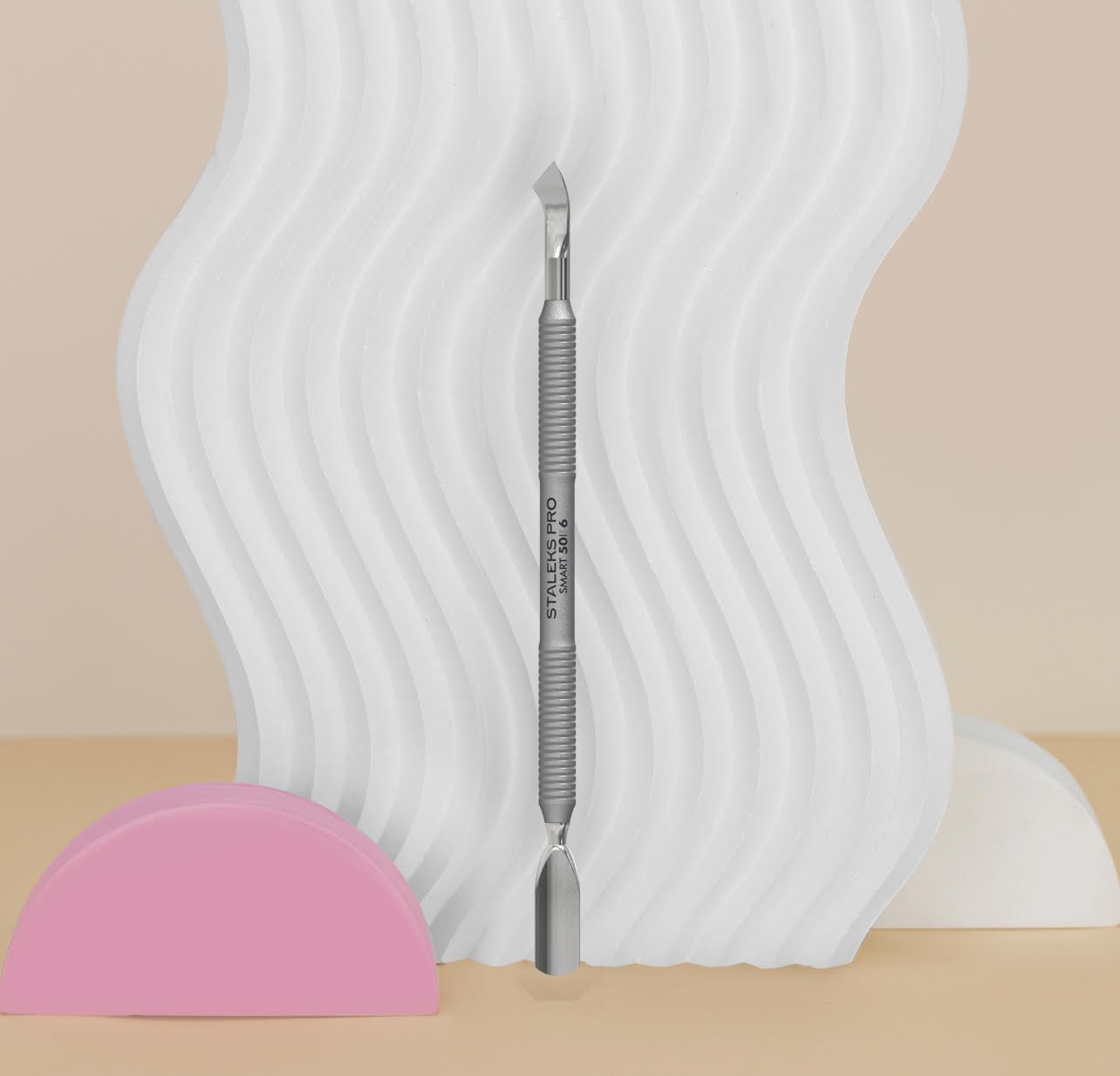 0Il Staleks Pro Smart 50/6 è uno spingipelle professionale con punta stretta arrotondata e lama obliqua, ideale per trattamenti precisi e delicati delle cuticole.
