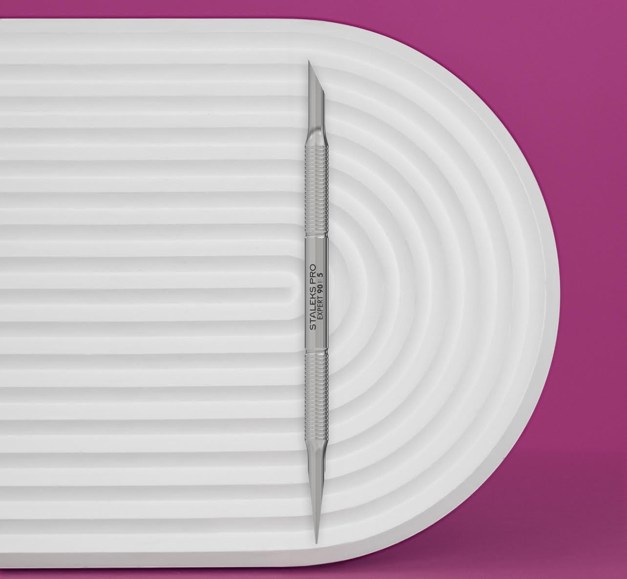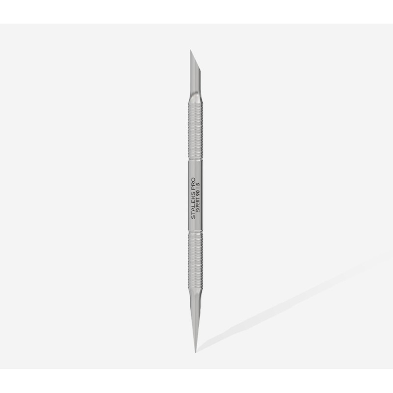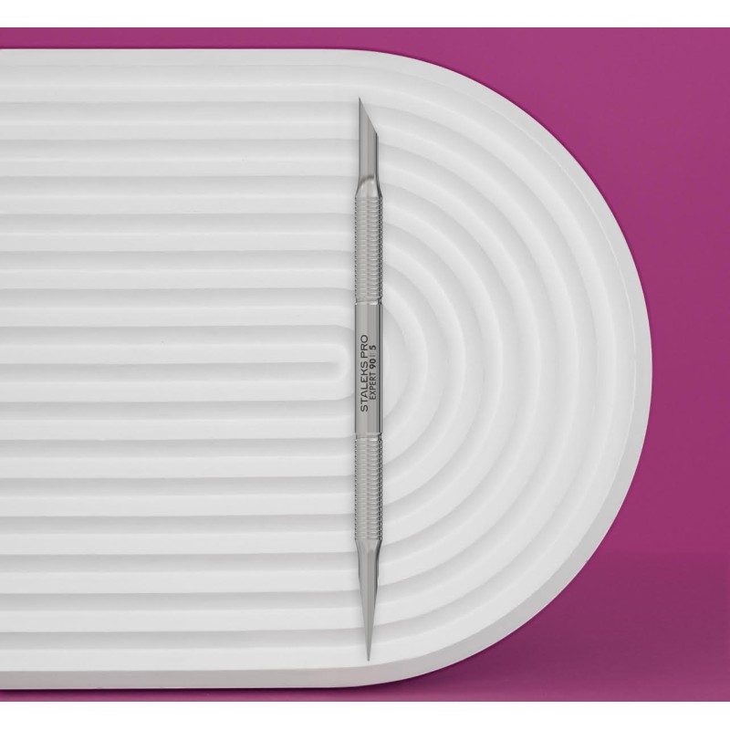 Il Staleks Pro Spingipelli Professionale Expert 90/5 è uno strumento professionale con spintore obliquo e dritto, progettato per trattamenti precisi delle cuticole e delle unghie.