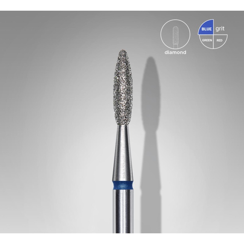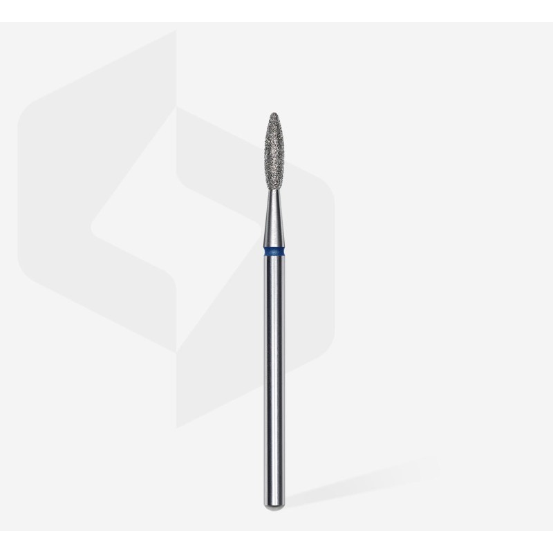 La Punta in Diamante a Fiamma Blu Expert (diametro testa 2.1mm, diametro totale 8mm) di Staleks Pro è ideale per rifiniture precise e lavori delicati su unghie naturali e artificiali, grazie alla forma a fiamma e al materiale in diamante resistente.