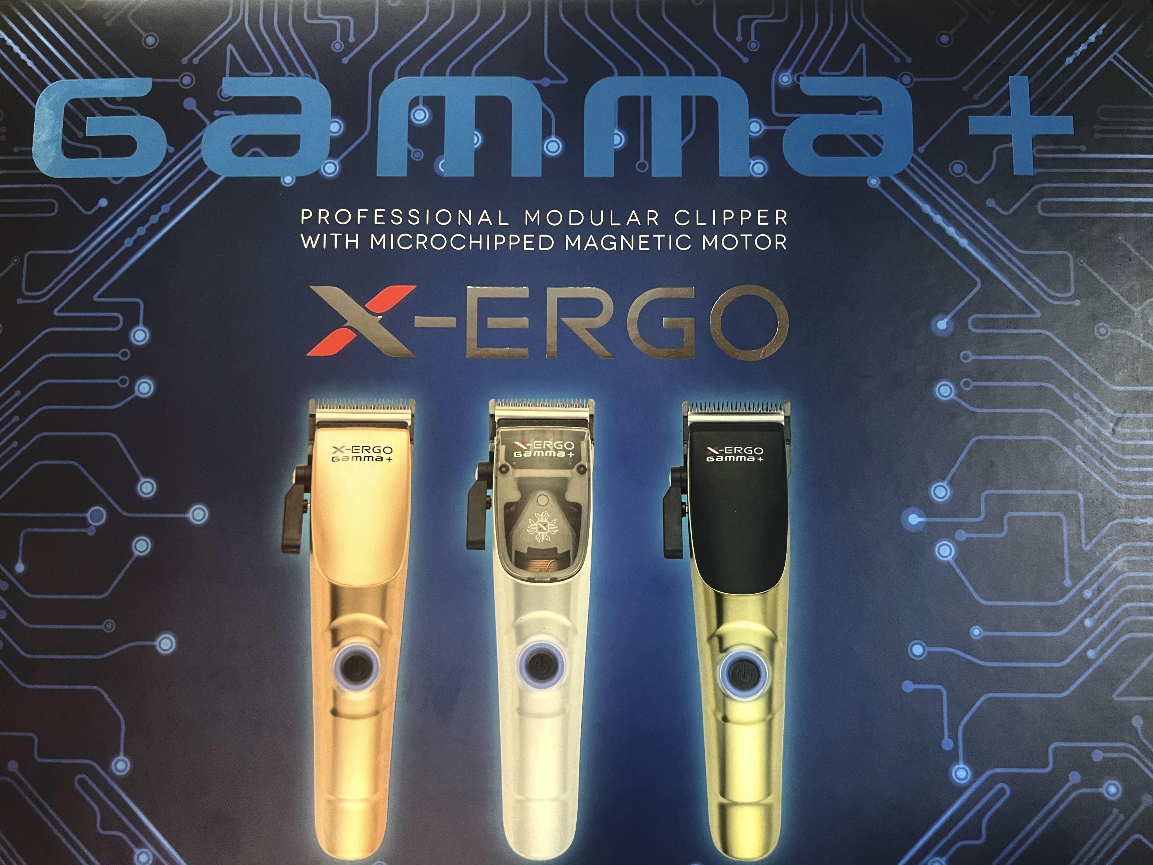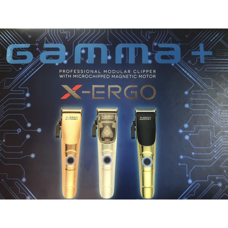 La Gamma+ x-ERGO è una tosatrice magnetica di livello professionale, creata per poter offrire un taglio preciso e senza sforzo è dotata da un motore potente e a lunga durata, questa macchinetta garantisce una forza di taglio superiore e costante, lo rende ideale per fare sfumature perfette, rasature a zero e lavori dettagliati molto raffinati. Ha la capacità di adattarsi in 3 cover intercambiabili, che danno la possibilità di personalizzare l'estetica della tosatrice, le funzionalità di questa tosatrice sono la lama da 45mm DCL Black Diamond ad alta scorrevolezza, 3 leve personalizzabili: per click system o 1 per freestyle, motore von 10'000 RPM, microchip maggiorato per un incremento di coppia e potenza, kit di pulizia e manutenzione con mini cacciavite per regolazione, facile regolazione della lama con la possibilità di zero gap per finitura razor fade, batteria al litio 120 minuti di autonomia con ricarica rapida di 105 minuti, supporto lama regular o stretch per personalizzare la corsa corta o lunga, set 8 pettinini con doppio magnete misure (1,5- 3- 4,5 6-10-13-16-19)